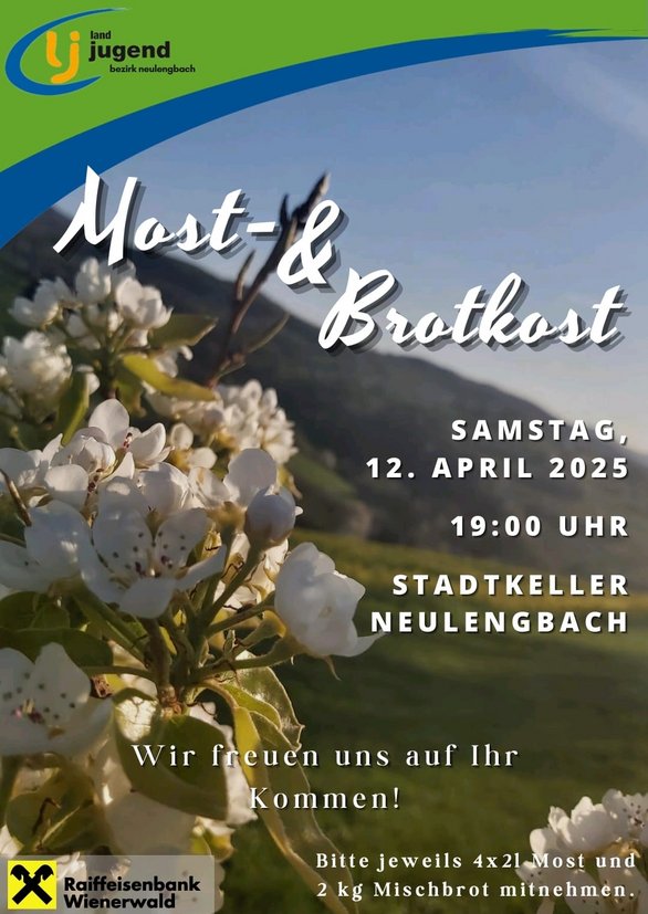 Am Samstag, den 12. April 2025, haben wir als Landjugend unsere Heimischen Produzenten:innen zur traditionellen Most- & Brotkost in den Stadtkeller Neulengbach eingeladen – und durften uns über viele gut gelaunte Gäste freuen.